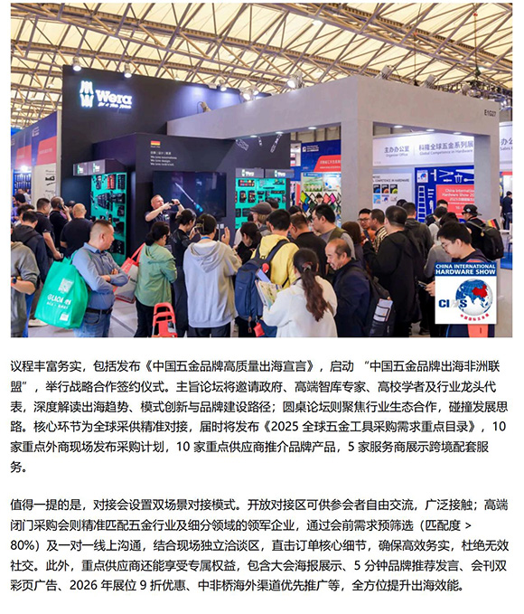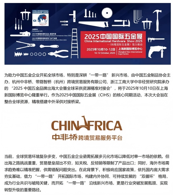 活动预告|中非桥承办2025CIHS国际采购商精准对接会 助推中国五金品牌出海